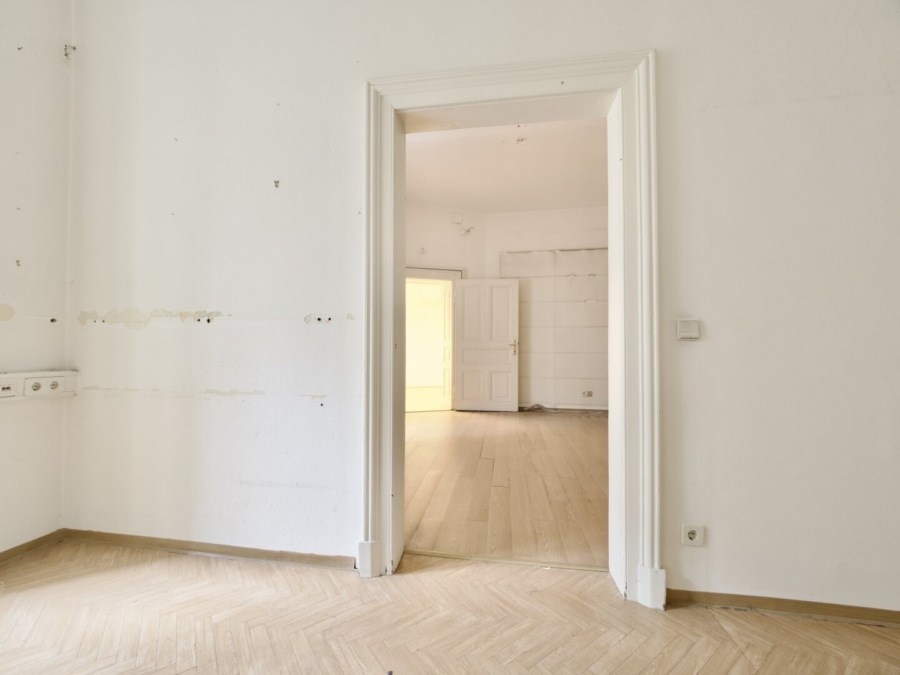... weiters durch den wunderschönen Altbaucharakter mit imposanter Raumhöhe, klassischen Flügeltüren, Kastenfenstern, Küche, WC ...
