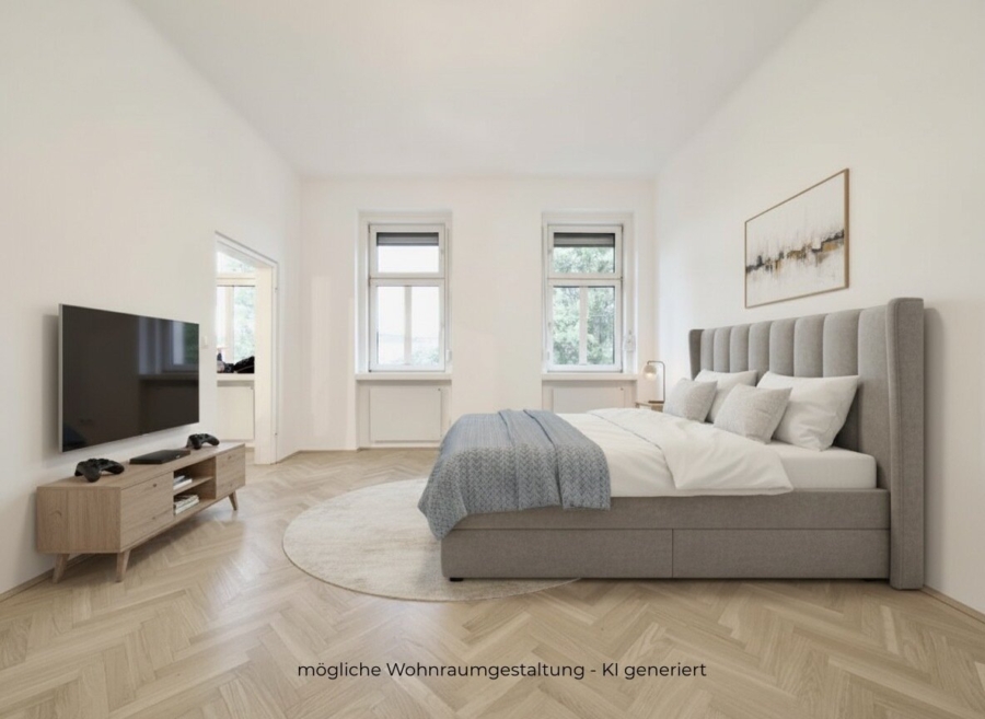 Die insgesamt ca. 62 m² große Wohnung in Ruhelage verfügt über insgesamt zwei Zimmer, Küche, Vorraum, Bad mit WC sowie einen außerhalb der Wohnung liegenden Abstellraum.