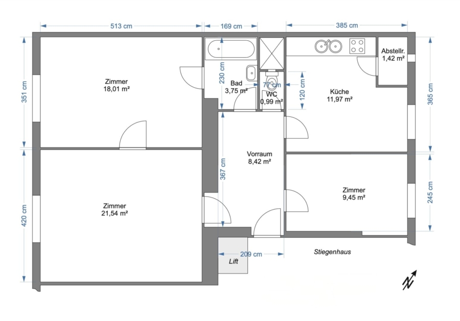 Zum Verkauf steht diese teilrenovierte, sehr gut geschnittene Drei-Zimmer-Wohnung im 2. Obergeschoss eines Neubaus des Jahres 1957. Das Wohnhaus befindet sich in einer ruhigen Seitengasse in unmittelbarer Nähe der Wiedner Hauptstraße.